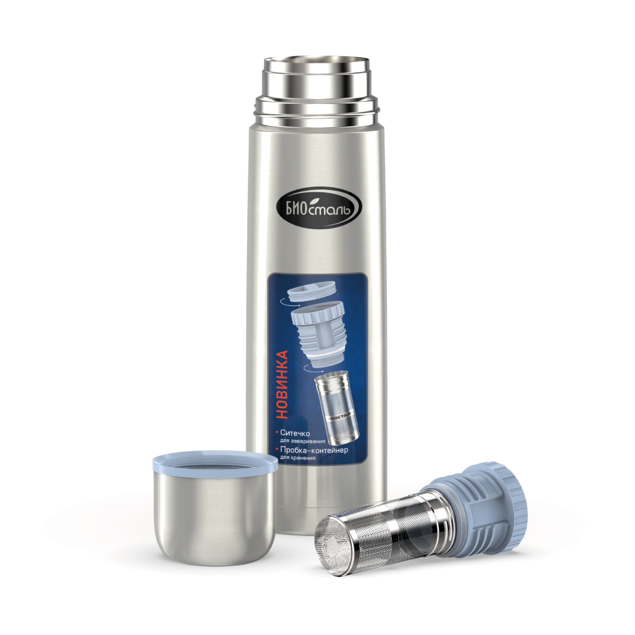 Термос 1.0л узкое горло пробка с ситечком