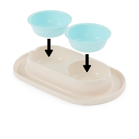 Миска для животных 0.3л двойная Мур-мяу на подставке св.бежевый