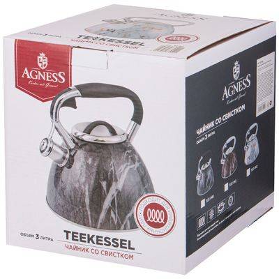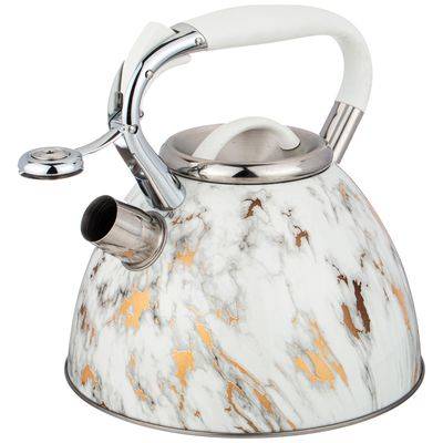 Чайник 3.0л для плиты со свистком Белый мрамор индукция