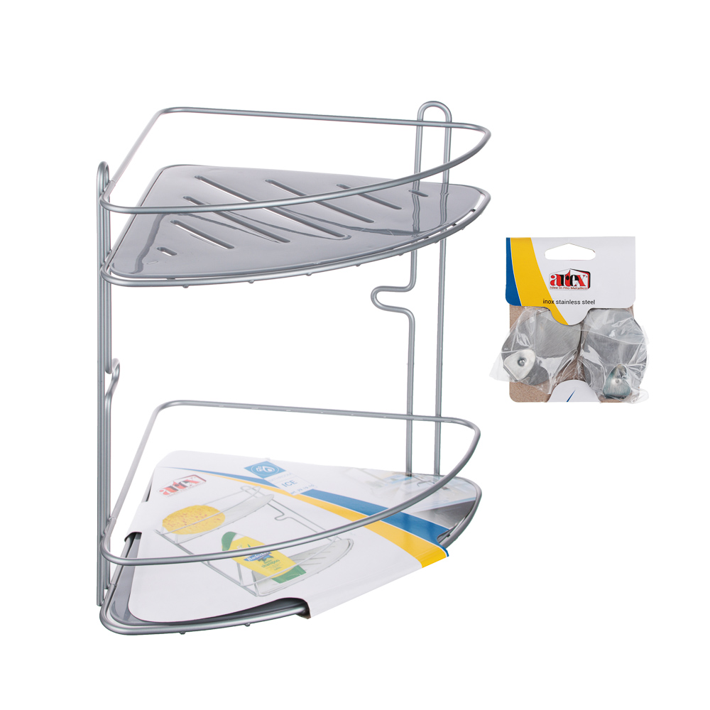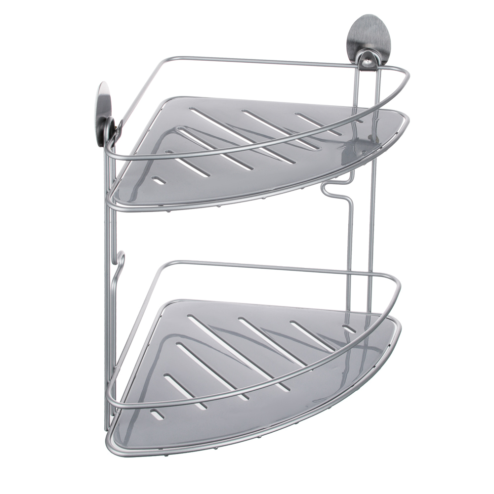 Полка настенная угловая двухъярусная с пласт.поддоном на самоклеящ.крючках