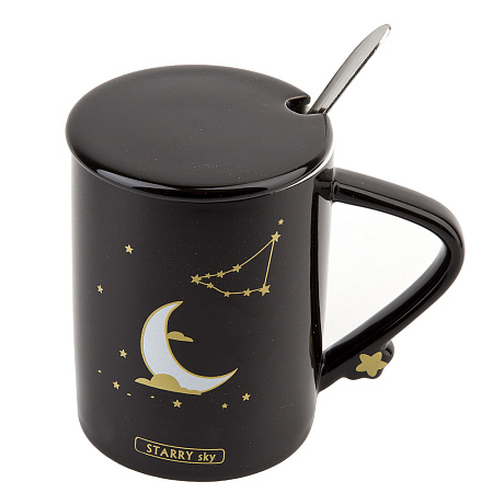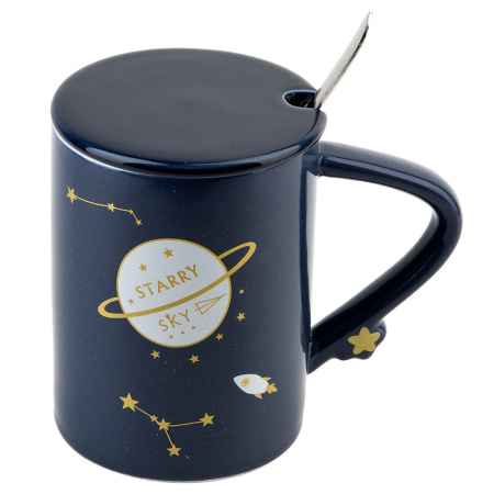 Кружка 480мл с крышкой и ложкой Starry sky (4 вида) п/у
