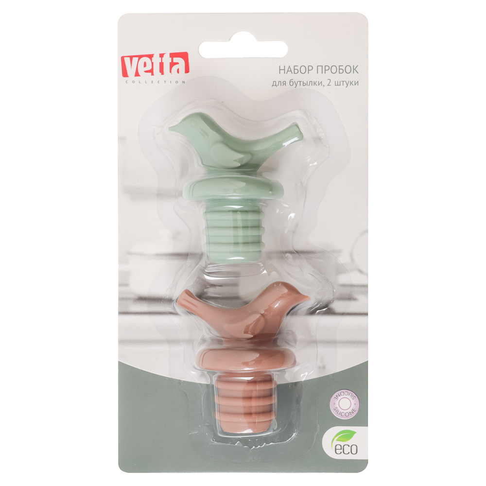 Набор пробок для бутылки VETTA – это удобные изделия из силикона, предназначенные для закупоривания открытых бутылок вина или шампанского. Гибкая пробка плотно закрывает горлышко бутылки, препятствуя попаданию воздуха внутрь сосуда, тем самым обеспечивая длительное хранение содержимого. Качественный пищевой силикон не имеет запаха, не выделяет вредных веществ и не изменяет вкус напитка. 2 штуки в блистере.