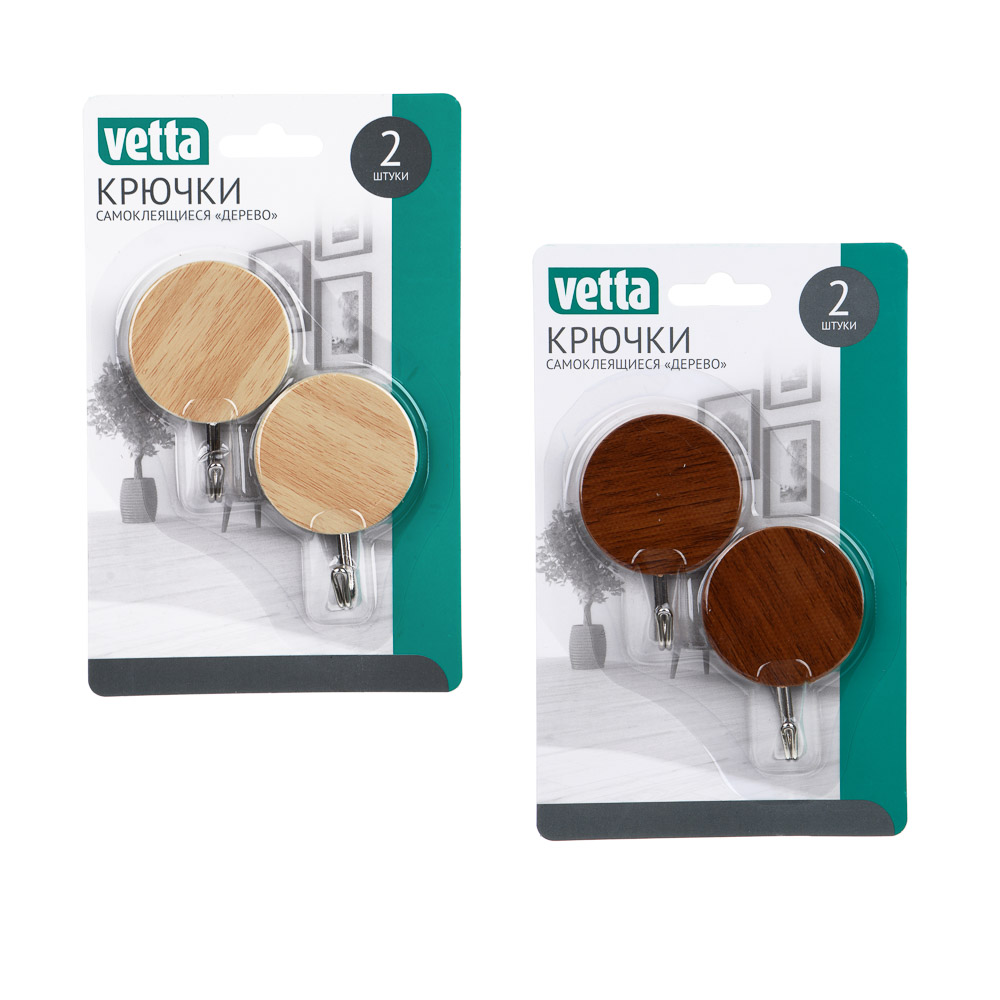 Набор крючков самоклеющихся 2шт Дерево микс