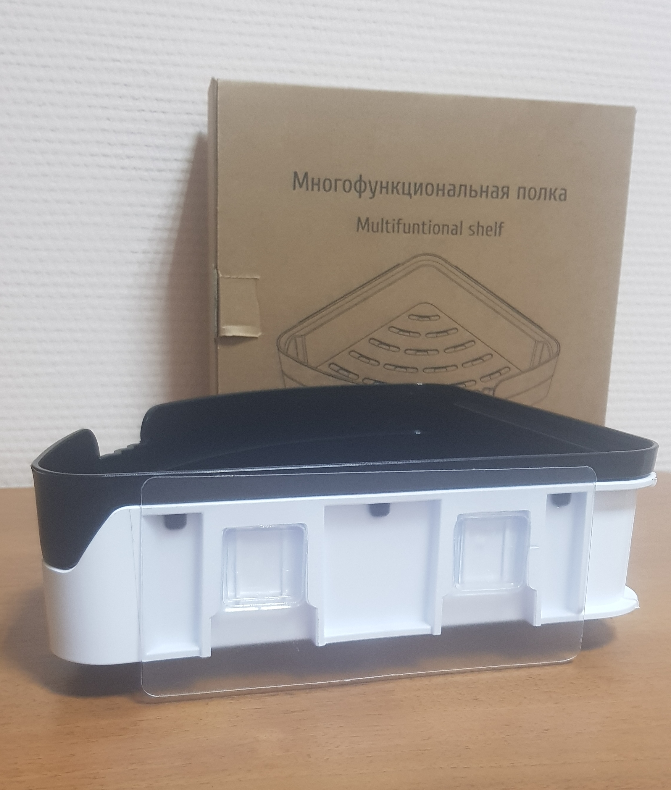 Полка угловая 22*22*6см черно-прозрачно-белая