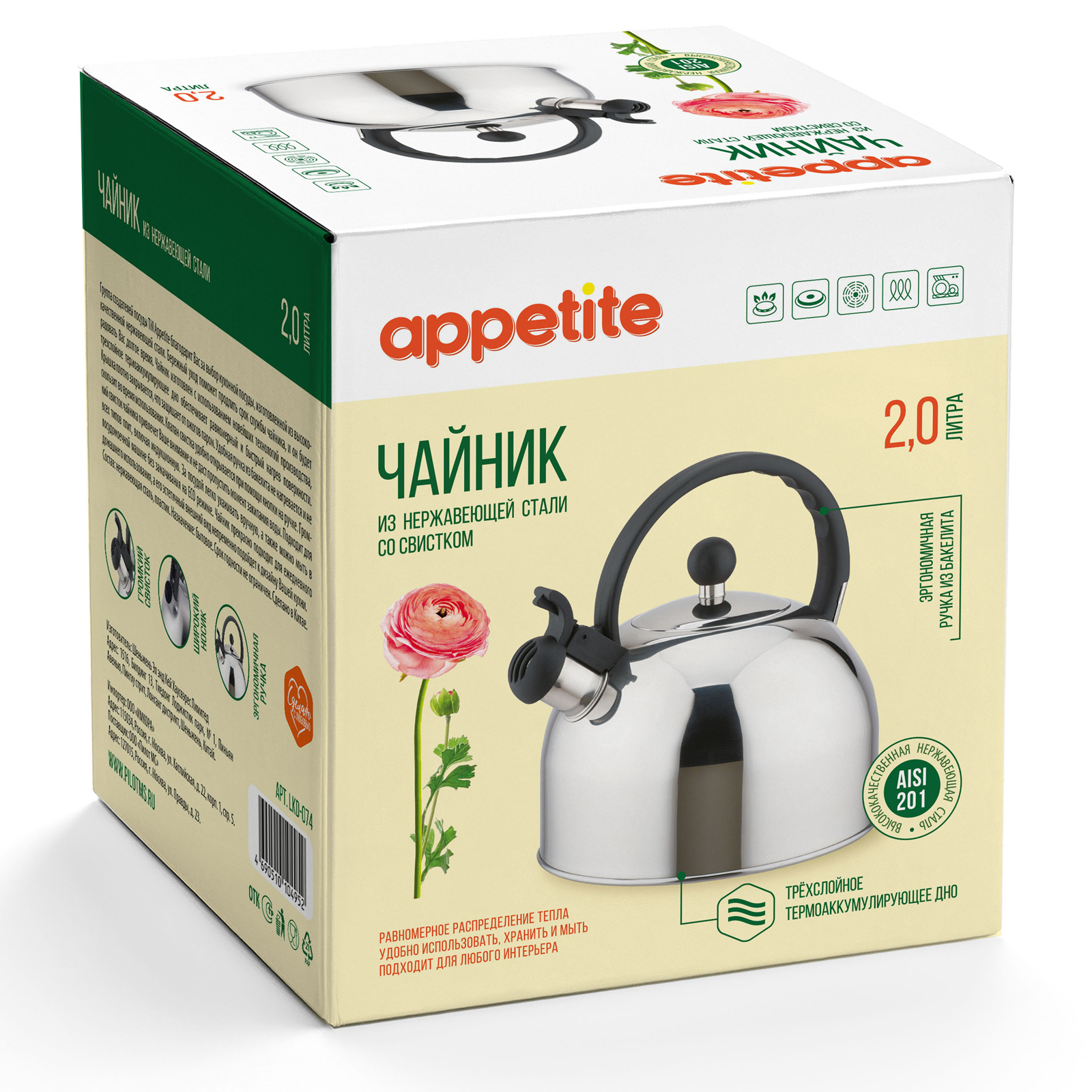 Чайник 2.0л для плиты со свистком
