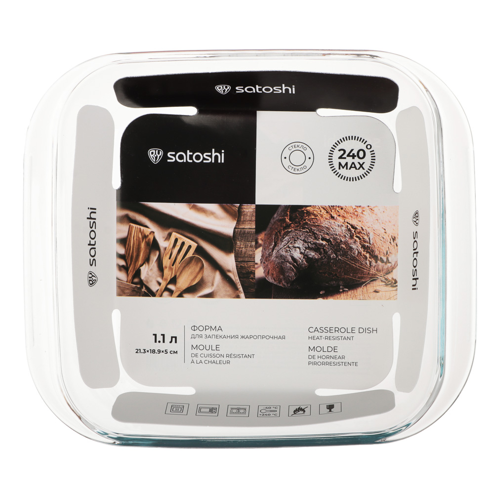 Форма 21,3*18,9*5см жаропрочная квадратная, с ручками 1,1л,