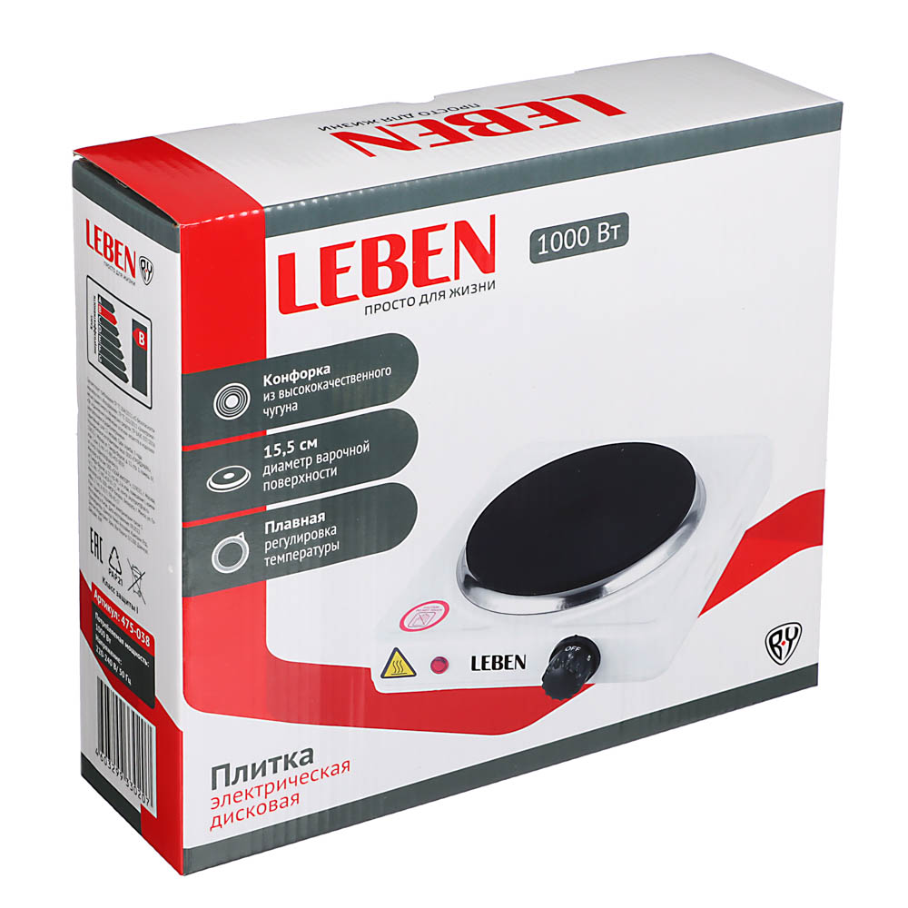 Электроплита одноконфорочная LEBEN 1000Вт белая диск