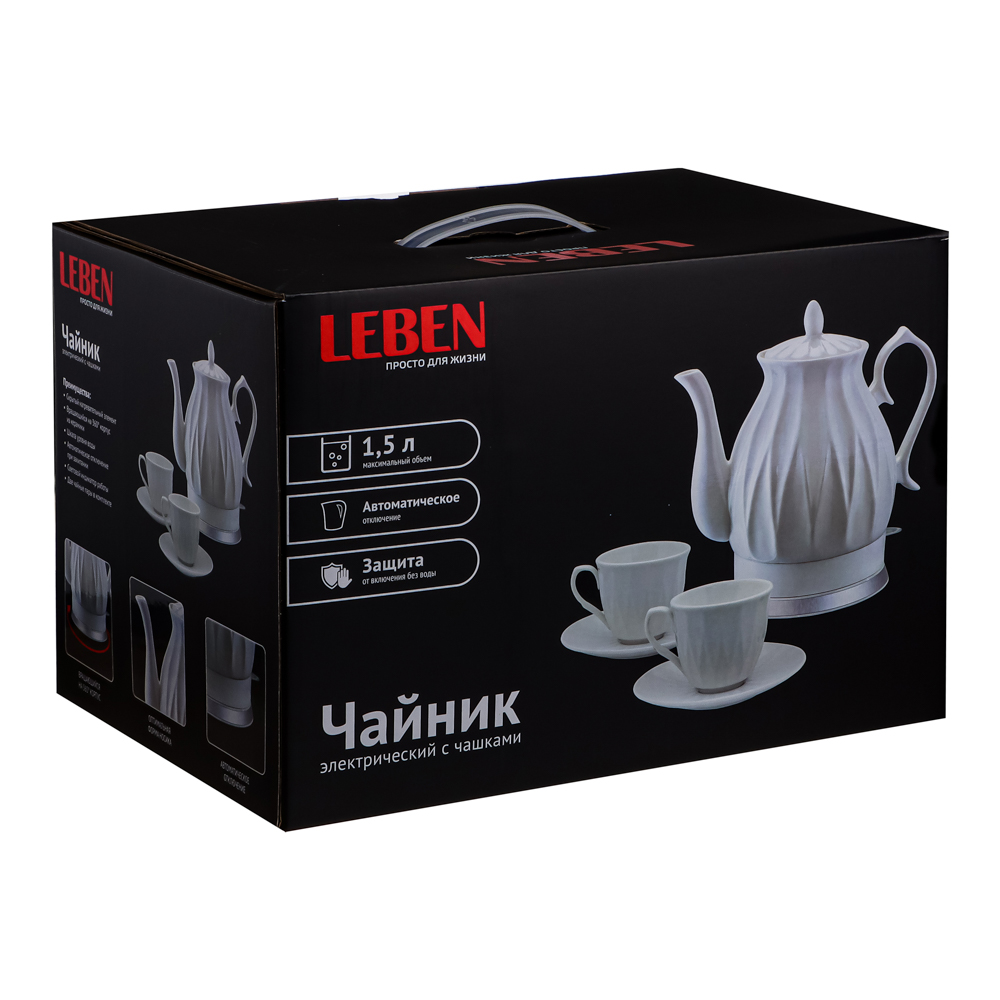 Чайник электрический 1.5л LEBEN 1850Вт с чашками керамика белый