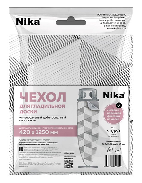Чехол для гладильной доски 130*52см Ника (с поролоном) со штрихами
