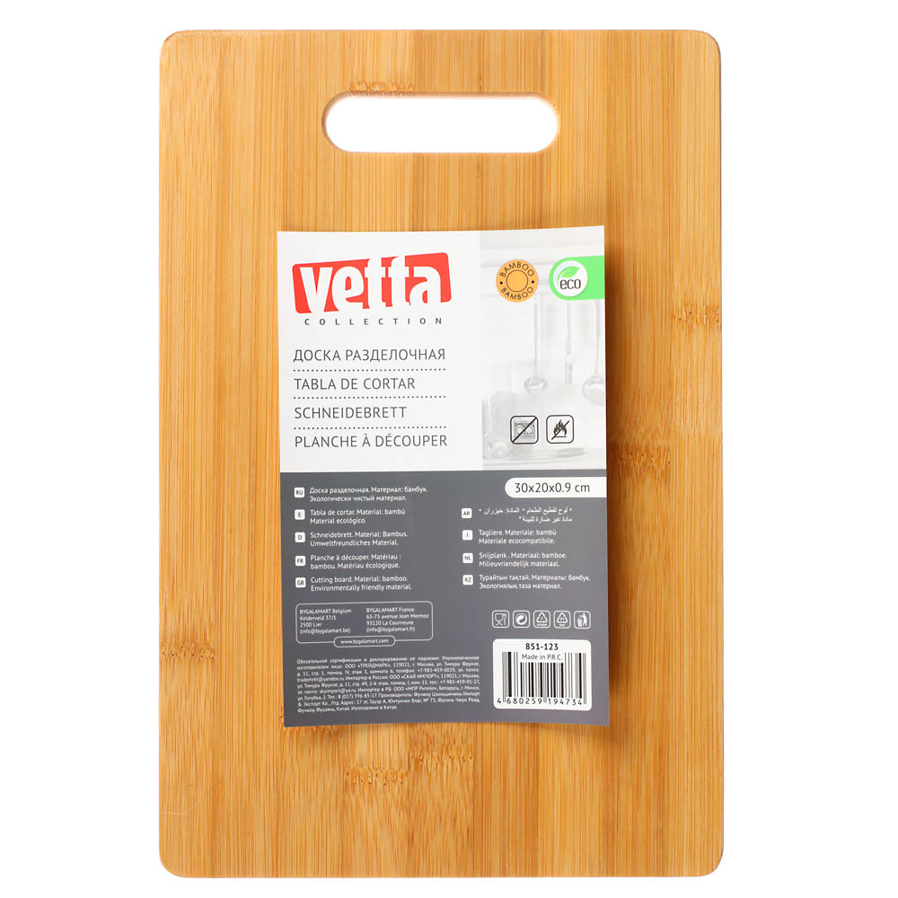 Разделочная доска VETTA Гринвуд 30х20х0,9 см изготовлена из прочного и экологичного бамбука, который отличается износостойкостью и обладает природными антимикробными свойствами. Удобна для нарезки овощей, фруктов, хлеба, мяса и рыбы. Гладкая поверхность не тупит ножи, легко очищается и не впитывает запахи, а удобное отверстие позволяет хранить доску на крючке, экономя место на кухне. Функциональная и стильная, доска из бамбука VETTA станет практичным и красивым аксессуаром для вашей кухни.