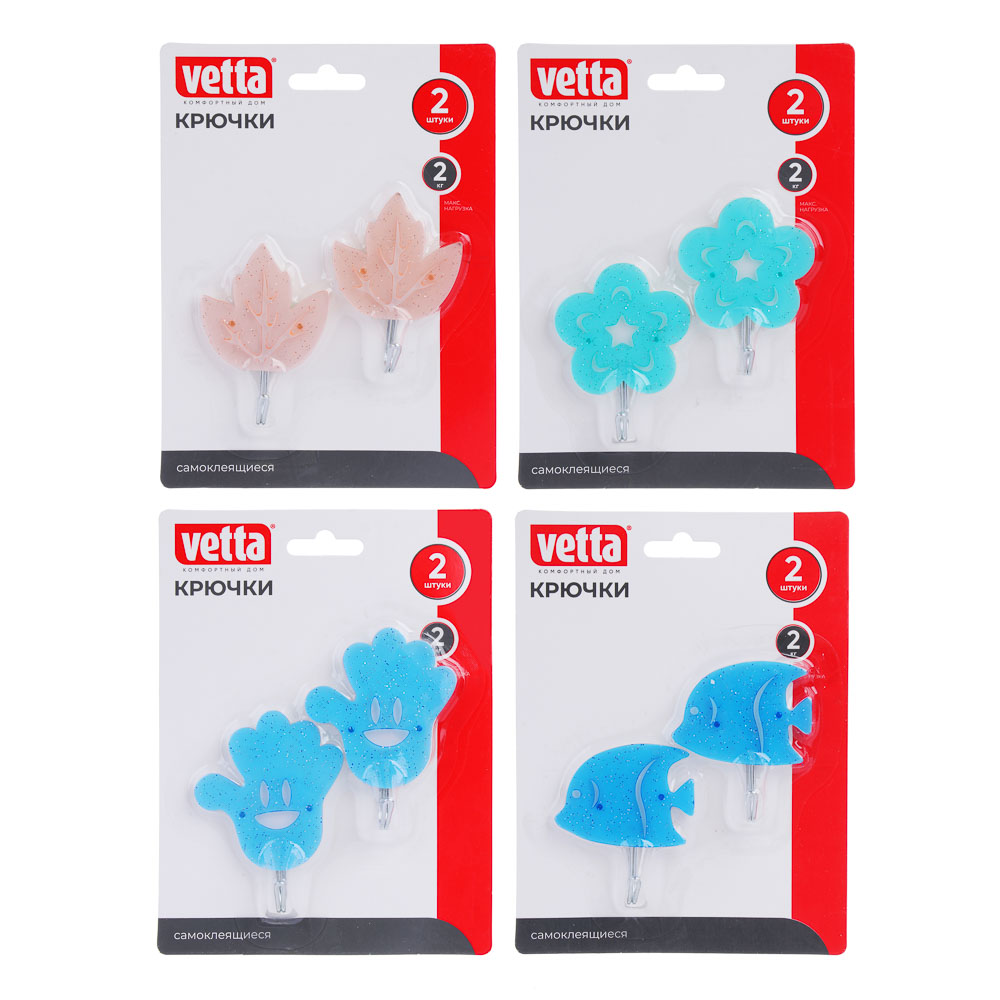 Набор крючков самоклеящихся 2шт. 4 дизайна