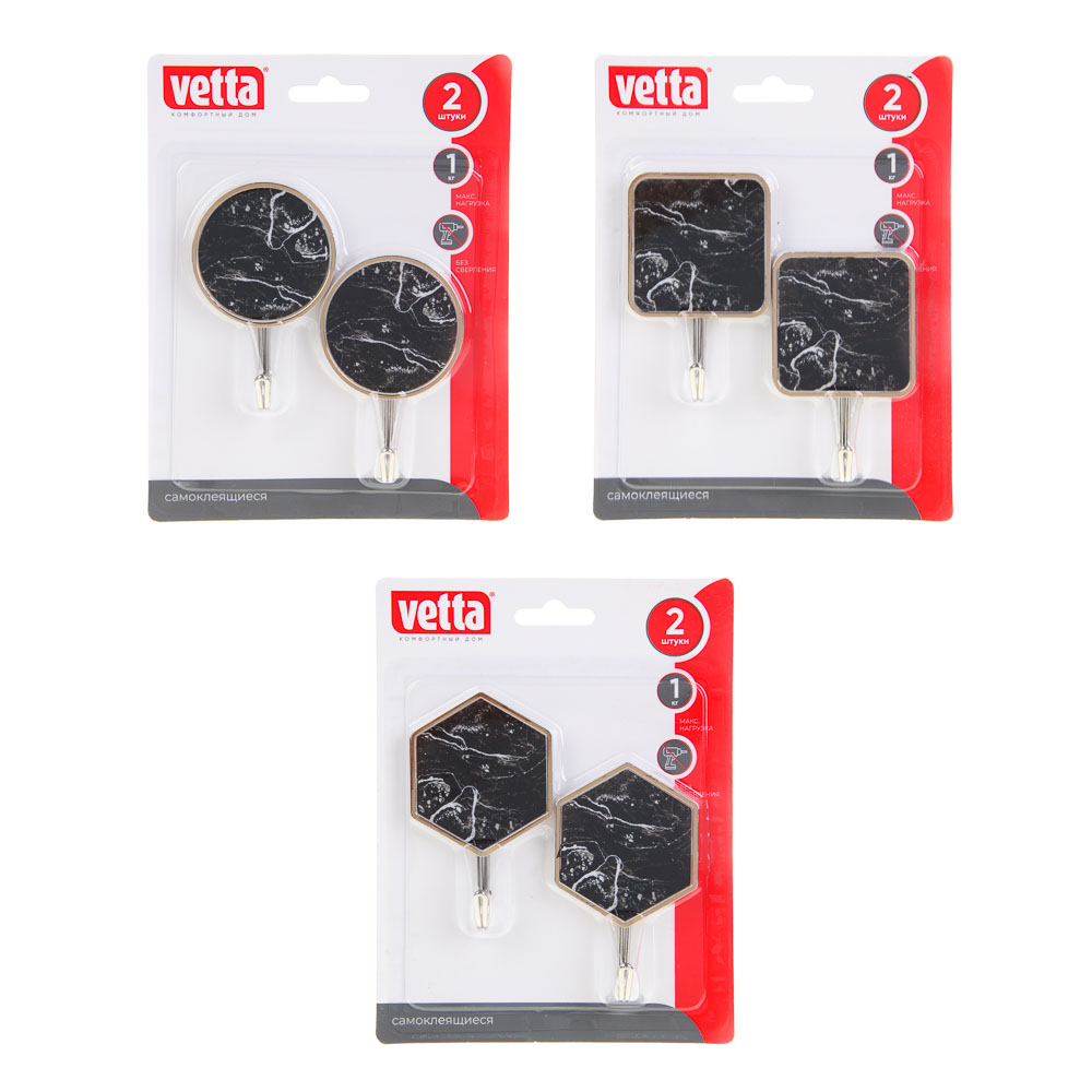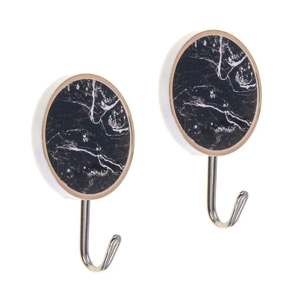 Набор крючков самоклеющихся 2шт Черный мрамор